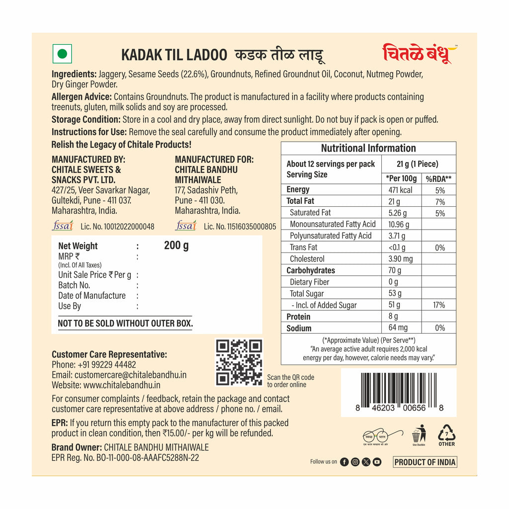 Our Til Ladoo is the perfect balance of sweet and nutty flavors, making them irresistible to anyone with a sweet tooth. These traditional Indian sweets are made from a perfect blend of roasted sesame seeds and jaggery. Try them today and experience the irresistible taste of sesame and jaggery!