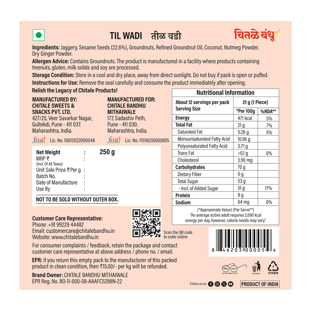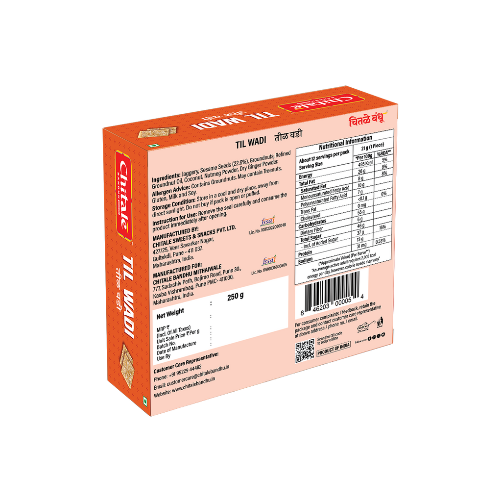 Til Wadi is a perfect snack for any time of the day, be it breakfast or evening snack. The crunchy texture of the sesame seeds and the natural sweetness of jaggery complement each other perfectly, making it a treat that is hard to resist.